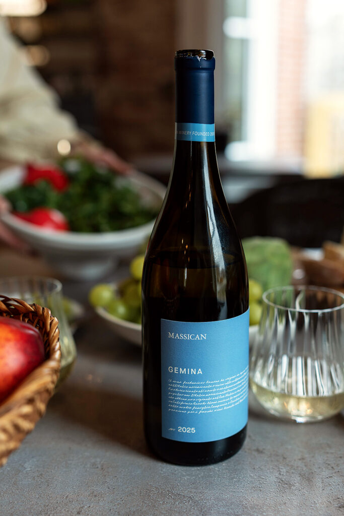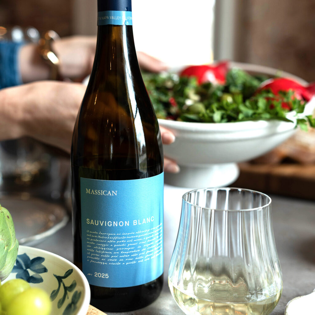 The Massican (MAH-see-con) white wines are made from 10 grape varieties planted in 16 vineyards on California’s North Coast (north of San Francisco). All our vineyards are farmed at a minimum with sustainable standards and at a maximum with certified organic practices – sixty-five percent of the vineyards that we source grapes are farmed organically as of the 2025 vintage. The winemaking is respectful of the vineyards and the grapes, and therefore, there is little intervention during the fermentation process to convert the sugars in the grapes to the alcohol in the wines. The wines are fresh, bright, light on the palate, less than 100 calories per glass (we believe there are six four-ounce glasses in each bottle of wine to be shared between two people), have no residual or added sugar, and contain limited amounts of sulfites. Let’s dig in a little. Or a lot. (Or just click herefor the wine pairings!)